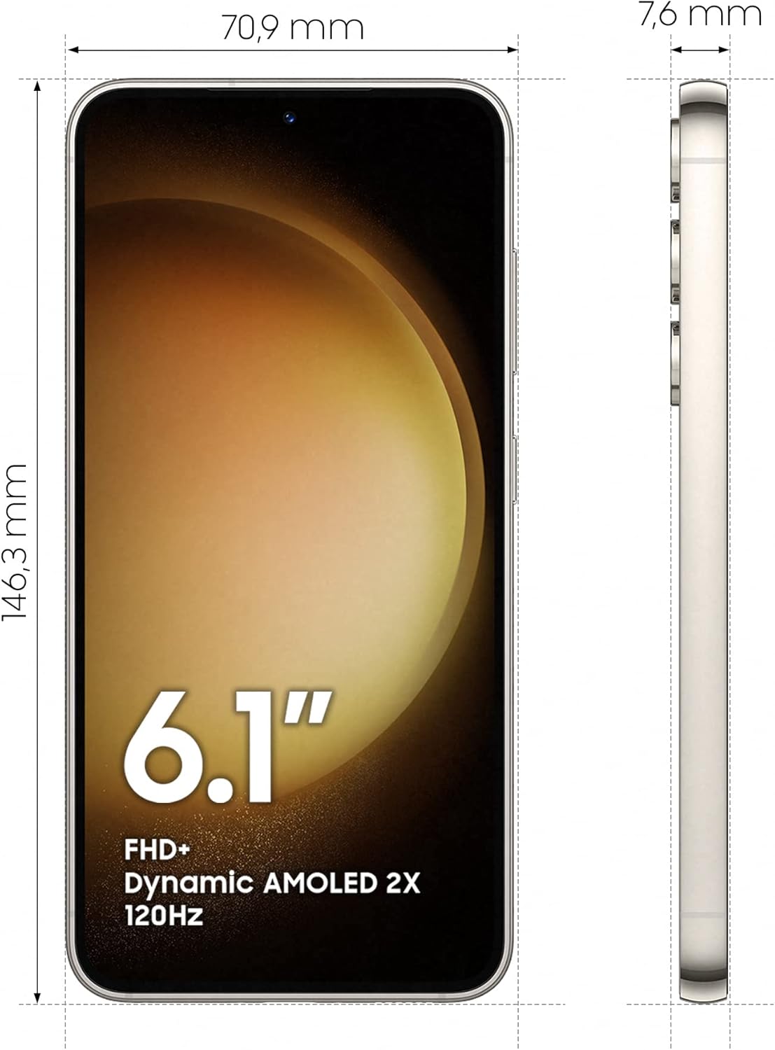 Samsung Galaxy S23 5G (256 GB, 8 GB) Pantalla AMOLED de 6.1 pulgadas de 120 Hz, cámara de 50 MP, video 8K, nightography, versión CAD desbloqueada, color crema