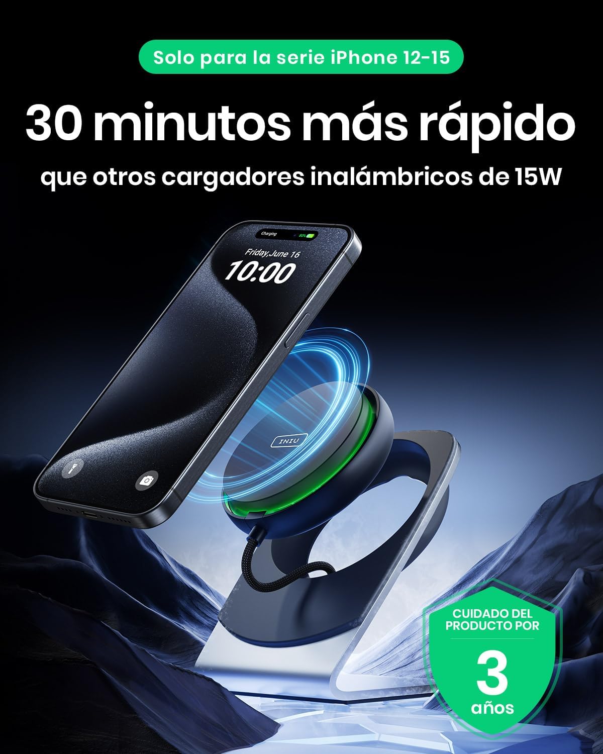 INIU Cargador Inalambrico para iPhone con Magsafe, 15W Carga Rápida Cargador Magnético con Enfriamiento Eficiente para iPhone 16 15 Pro MAX, iPhone 14 Plus, 13, 12 (Adaptador USB-C y Cable Incluidos)